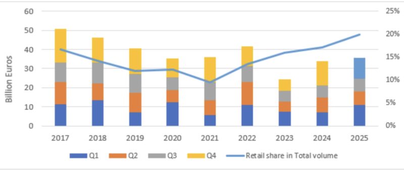 8 hours ago - European retail investment volumes have surpassed €24.6 billion so far this year, a 16% increase on the same period in 2024 and 3% above the five-year average for Q1–Q3, according to Savills’ latest research.