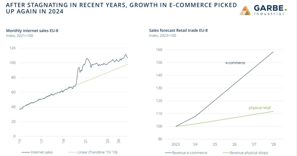 “The defence industry is growing and will be a significant future demand driver for logistics,” said Tobias Kassner, member of the Executive Board & Head of Research & ESG, Garbe. “And after stagnating in recent years, e-commerce has picked up again and is set to overtake physical retail.”