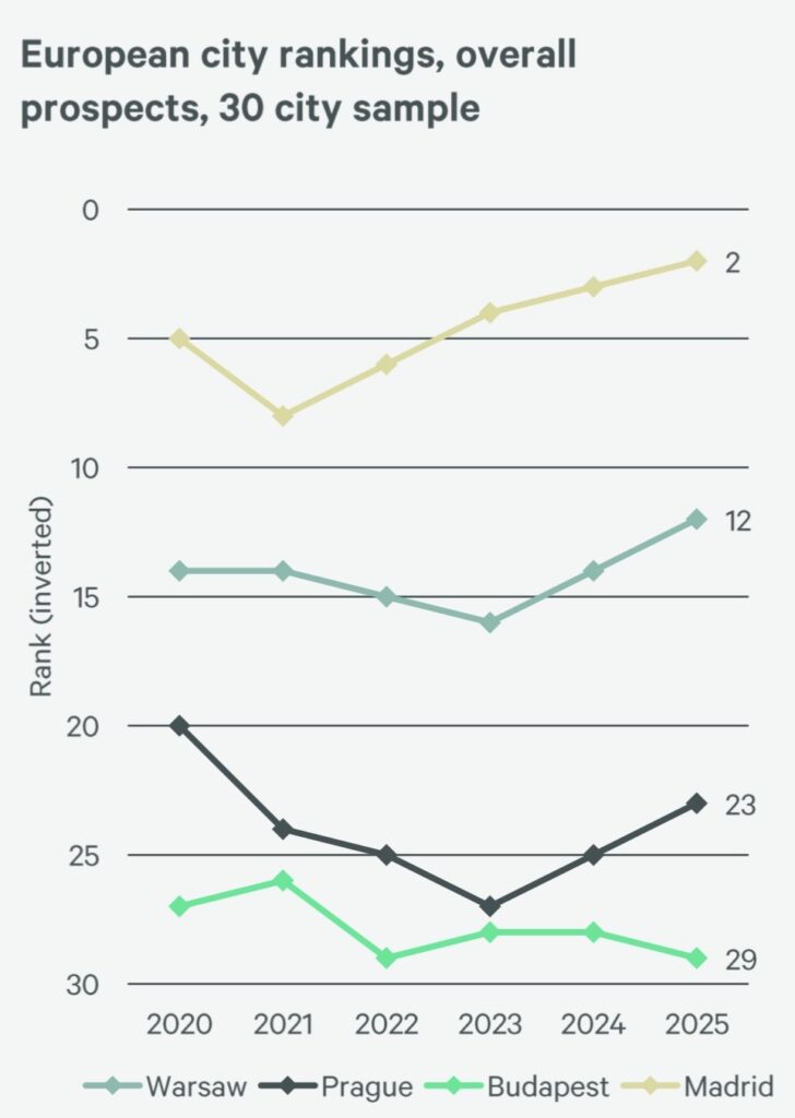 Among European cities, Budapest has lost ground while Warsaw and Prague are up, respectively at n12 and n23 in the rankings.